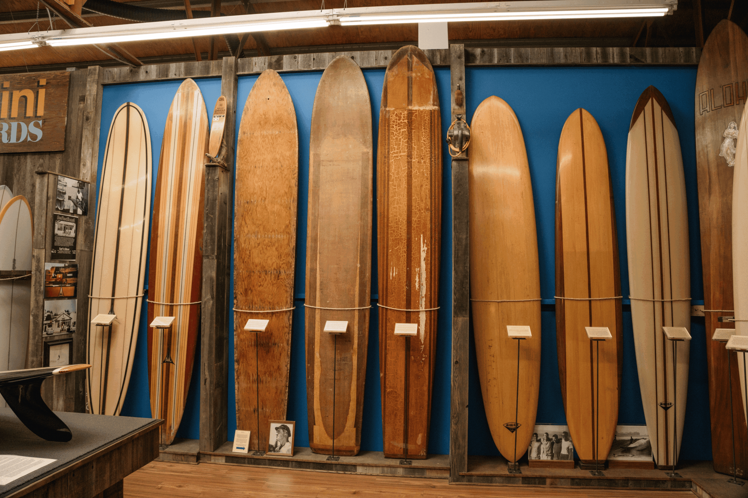 1961年から店を構えるSurf n' Wear’s Beach House。サーフィン黎明期から現代までのイェーター・サーフボードが展示