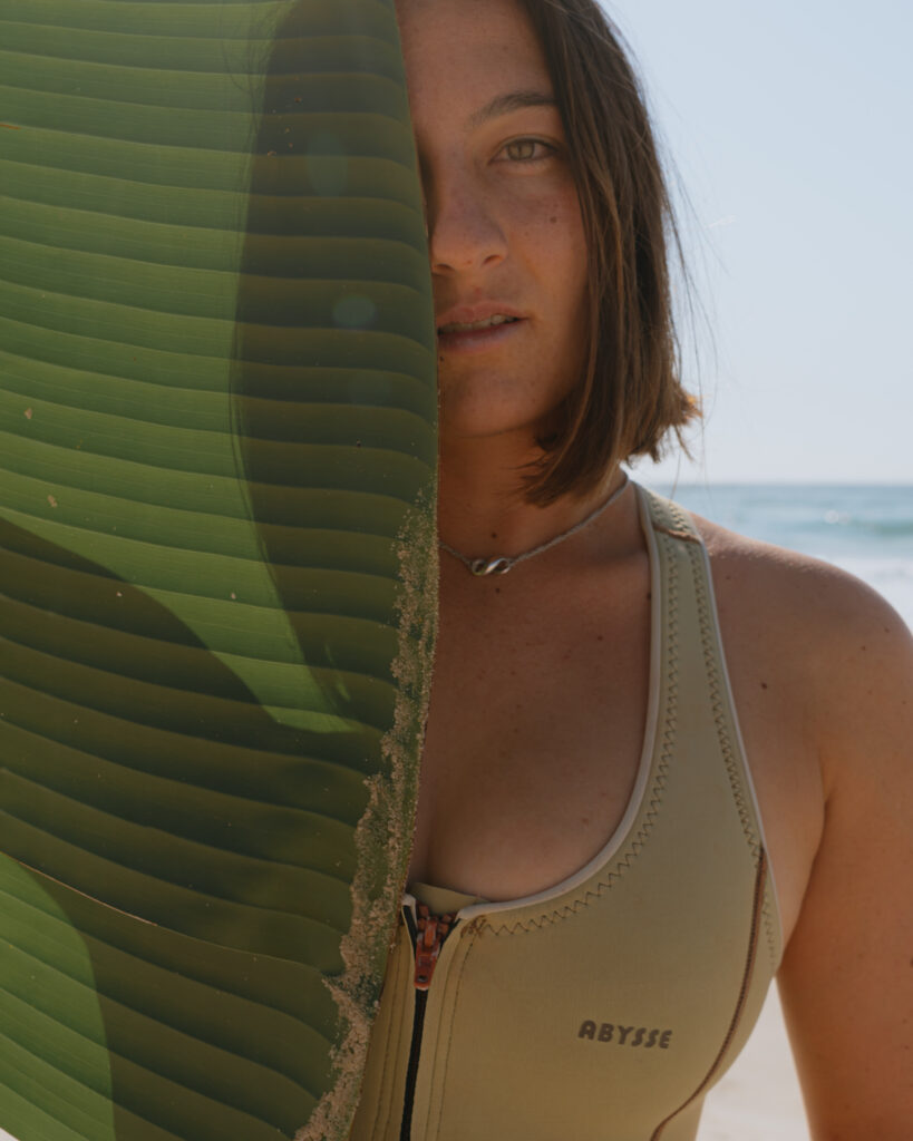 子どもの頃から沖縄でたくさんの時間を過ごしてきたから、海は私にとってすごく身近で、安心できる場所。家族や友達がいつも海に連れて行ってくれて、シュノーケリングをしたり、ボートに乗ったり、泳いだりしていた。だから自然とのつながりは、ずっと強く感じている。自然は、自分に戻れる場所であり、好奇心を思い出させてくれる場所。海にいると「帰ってきた」っていう安心感があって、サーフィンをしているときは、力強さとしなやかさ、その両方を自分の中に感じられる。