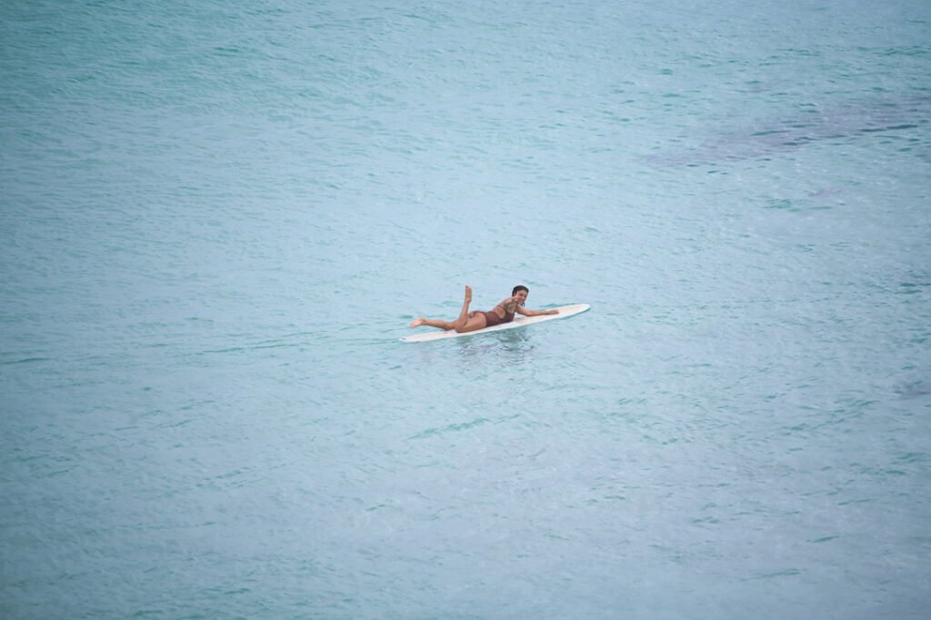 このポイントを俯瞰的に観察していると、それぞれの波への向き合い方が見えてくる。ピークでセットの波を狙う人もいれば、小さくても本数を乗れる手前で待つ人もいる。早朝、まだ日が昇る前の真っ暗な中でパドルアウトする人もいれば、日が沈んだ後、桟橋の灯りを頼りにサーフィンをする人もいた。それぞれが、いかに多くの波に乗れるかを考え抜いた末のスタイルなのだろう。