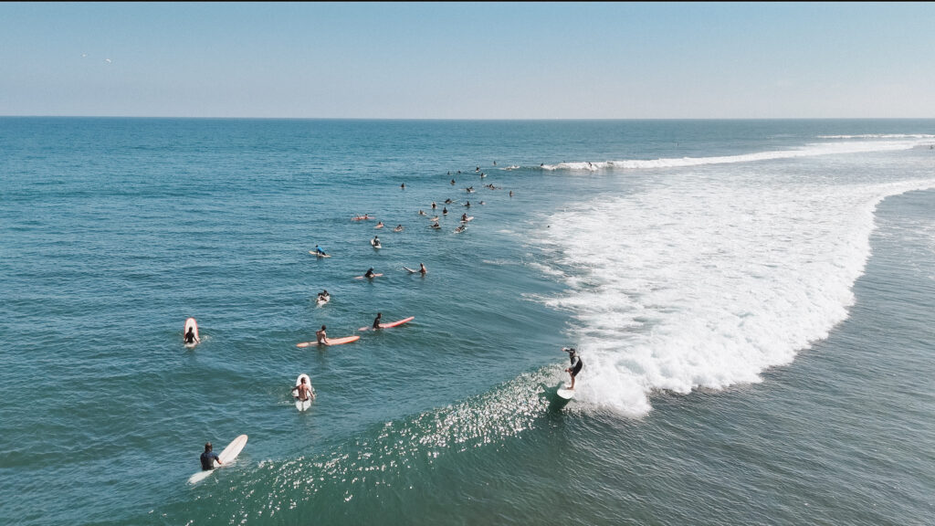 ピークから静かに波が立ち上がると、リーフに沿って「崩れる」というよりも、「剥がれ落ちる」という表現がふさわしいほど、リップが美しくブレイクしていく。そんなライト方向のポイントブレイクにもかかわらず、ロサンゼルスの都市部から近いこともあり、集まるサーファーは数知れない。ピークには、ノーリーシュでスタイリッシュにノーズを決めるベテランサーファーがいる一方、手前には初心者サーファーもいる。混雑のピーク時にはカオスになるが、それでもマリブの波にこだわり、足繁く通うサーファーが後を絶たない。そんなポイントで波に乗るには、それなりの戦略が必要だ。