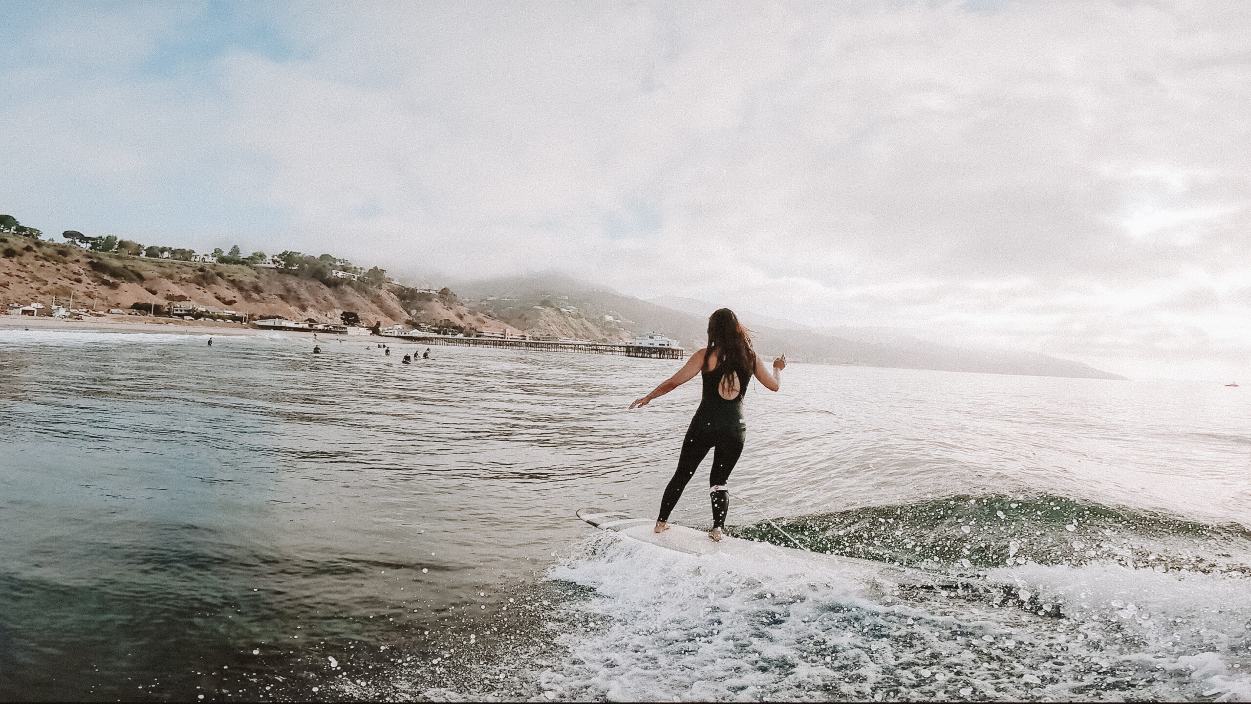 初めてサーフィンをしたのは5年前の2020年。当時、親友の友人が、子どもの頃から海に入っているような上手なサーファーの男の子と付き合い始め、その彼が一緒にサーフィンしようと誘ってくれた。その日の海はまったく怖くないコンディションで、カリフォルニアの暖かく心地いい日差しが広がる、とても気持ちいい日だった。