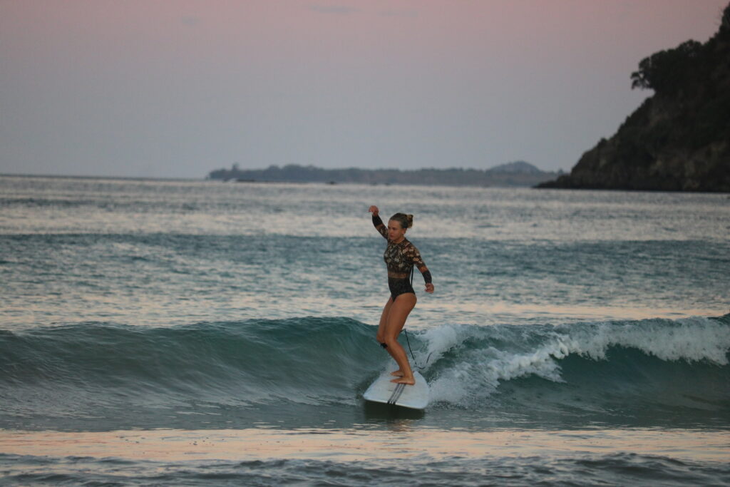 一人旅やバックパッキングが大好きで、大学卒業後に東南アジアを約1年かけて旅した。旅の途中でフィリピンに辿り着いて、サーフィンもダイビングもハイキングもできるし、何をしようか考えていたとき、ホステルで出会った人に「これからサーフタウンに行くけど、一緒に行かない?」って声をかけてもらった。そして向かったのが、サンフアン・ラウニオン(San Juan La Union)。そこで初めてサーフレッスンを受けて、多くの人がそうなるように、あっという間にハマってしまった。「ちゃんと乗れるようになるまで、この町を離れない」って決めて、気づいたら2ヶ月くらい滞在していた。そこが、私が本当にサーフィンを覚えた場所。